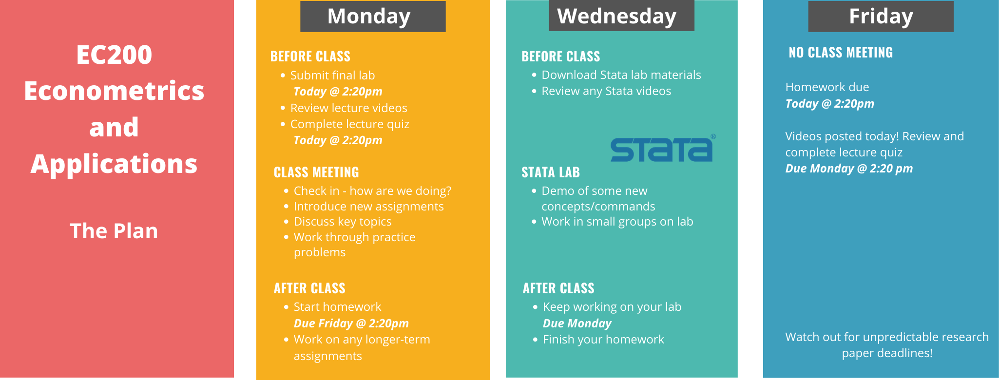 | 02 Sep | W | Lab 1: Getting to know Stata | ||||||